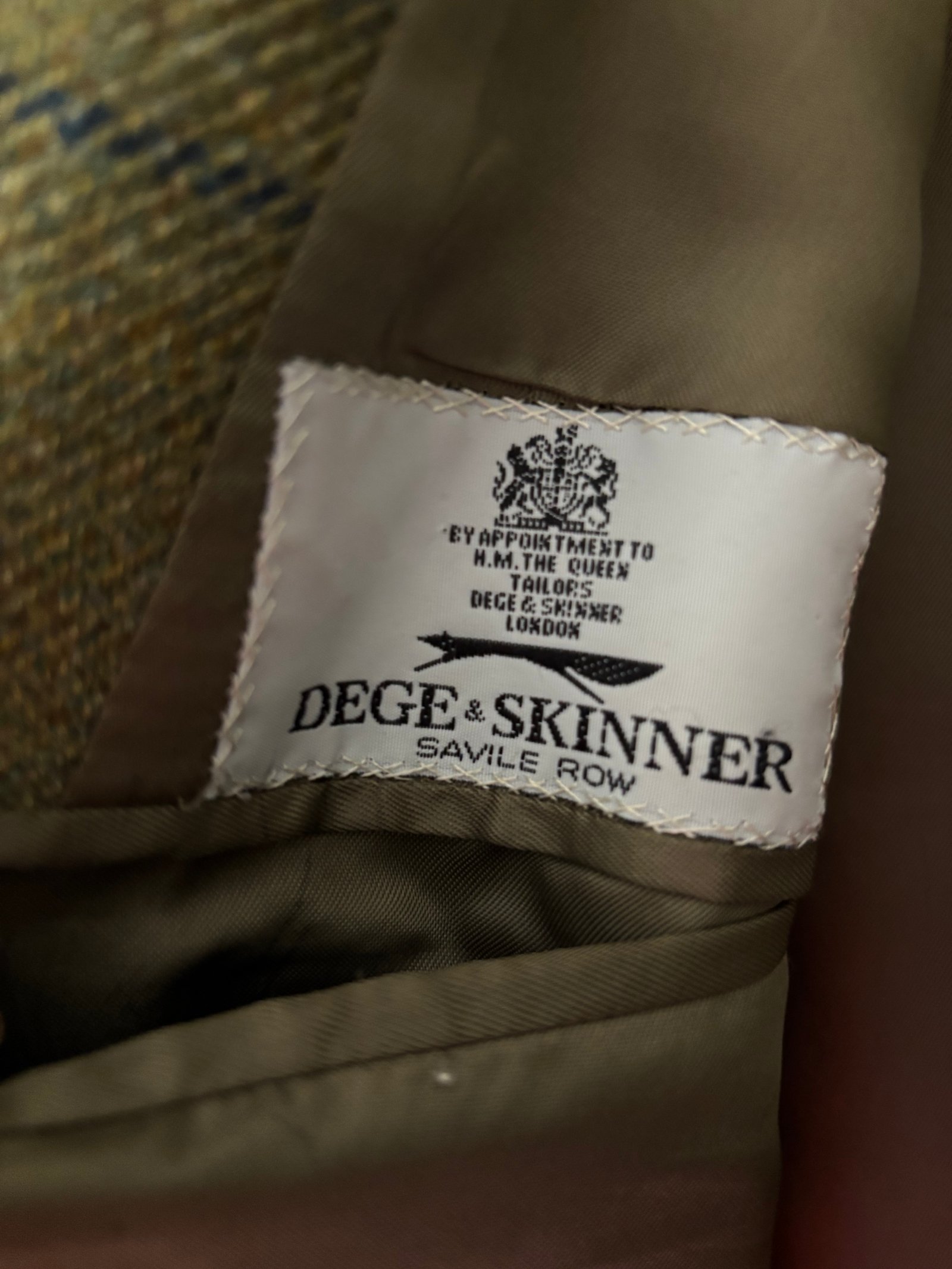 A vintage mens jacket from Dege and Skinner tailors based in Saville Row London, mint condition for age 42/44 chest size