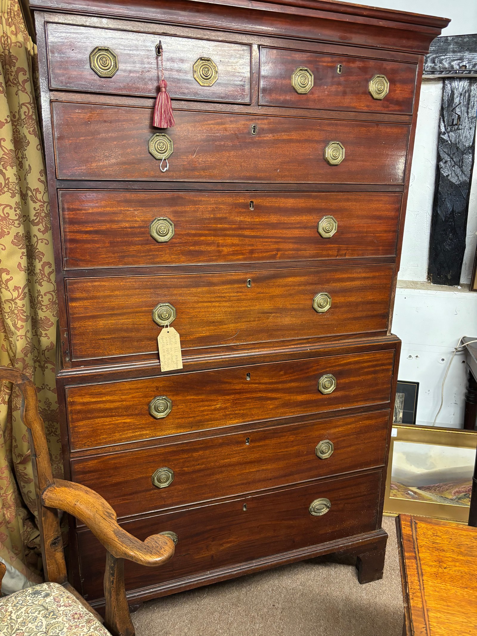 A George 111 mahogany chest on chest circa 1800 with brass handles and bracket feet, very good condition for age.