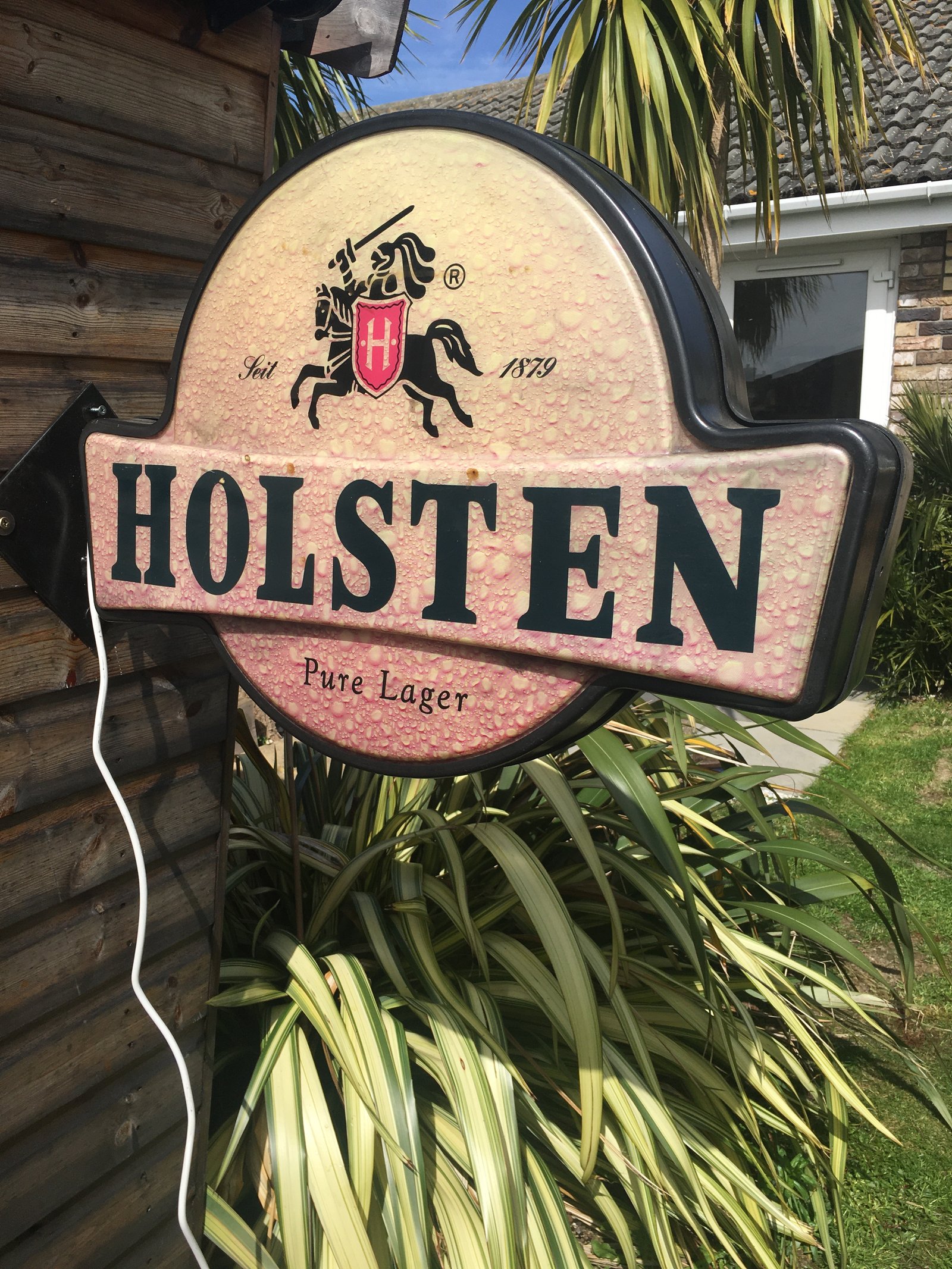 Very large plastic pub Lager sign on metal bracket with light inside which has been PAT tested in good condition